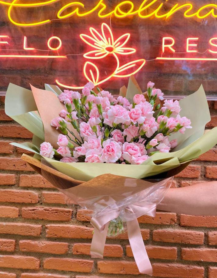 Lindíssimo e delicado bouquet com 24 hastes de Cravíneas rosa - Flores de longa durabilidade.